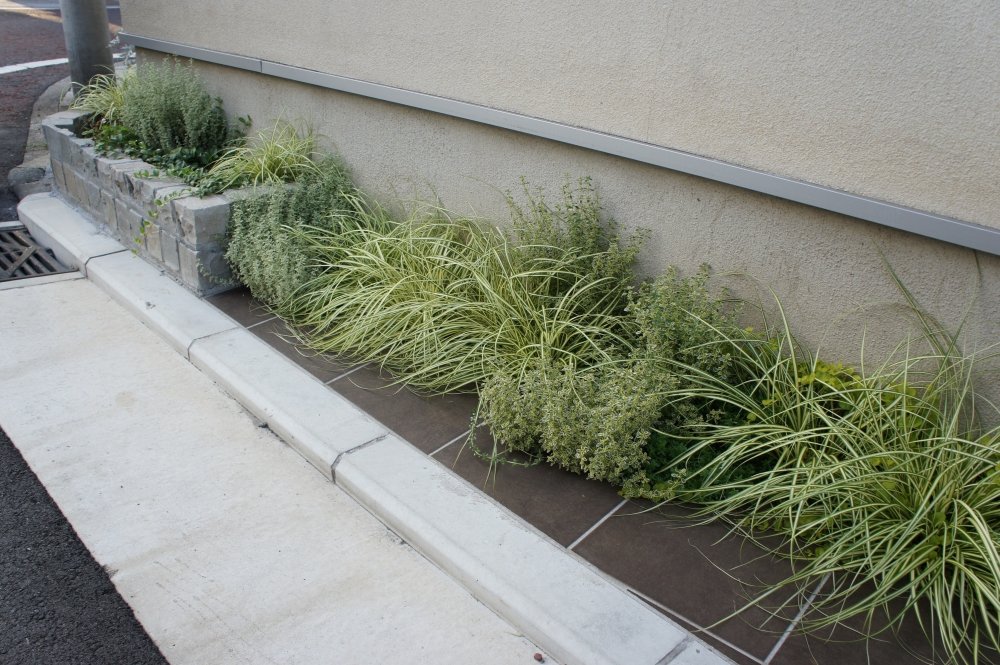 玄関と道路の間が最大1mから最少20㎝のスペースの外構工事をご紹介します。