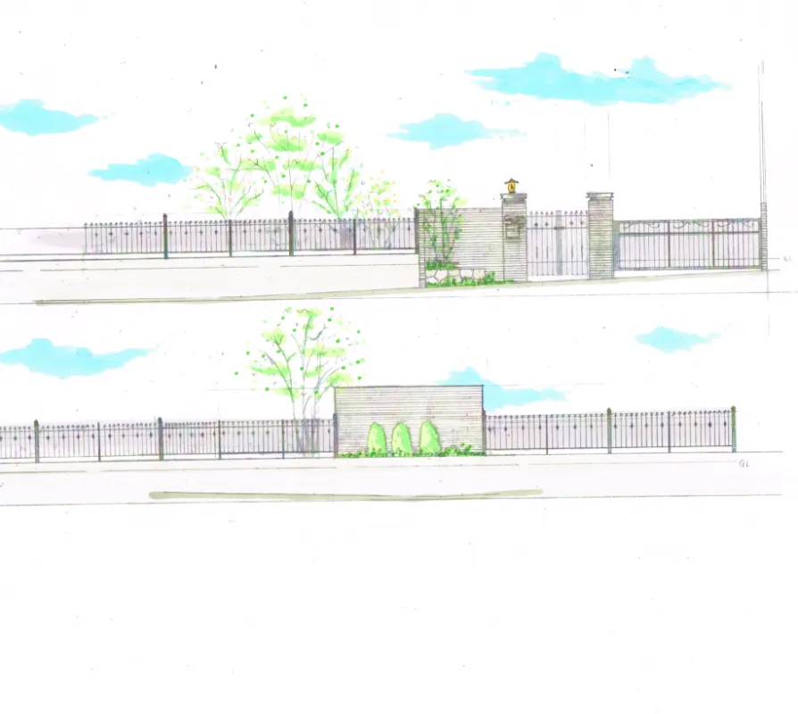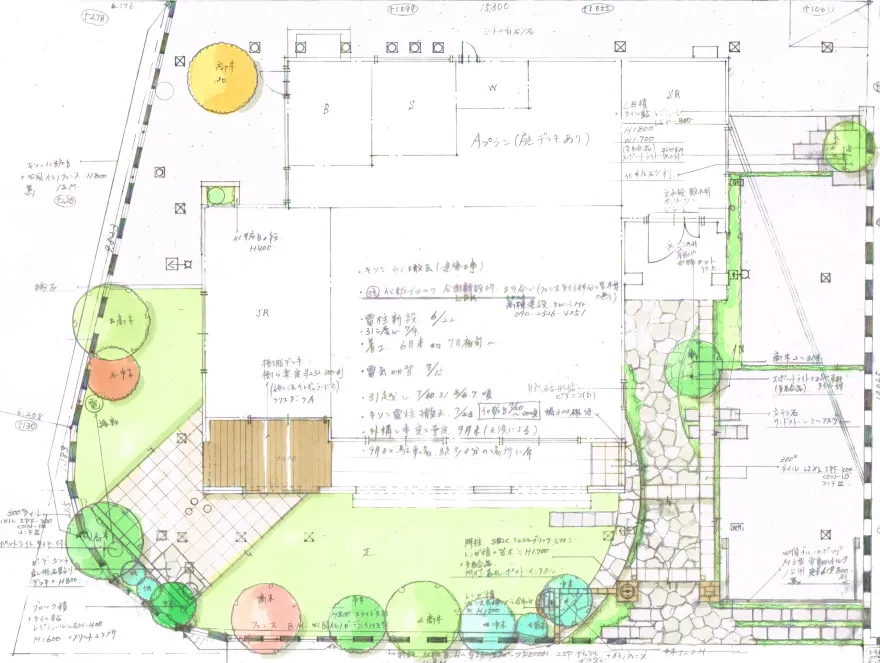 低木から高木まで、高さの違う植木でお庭囲い、