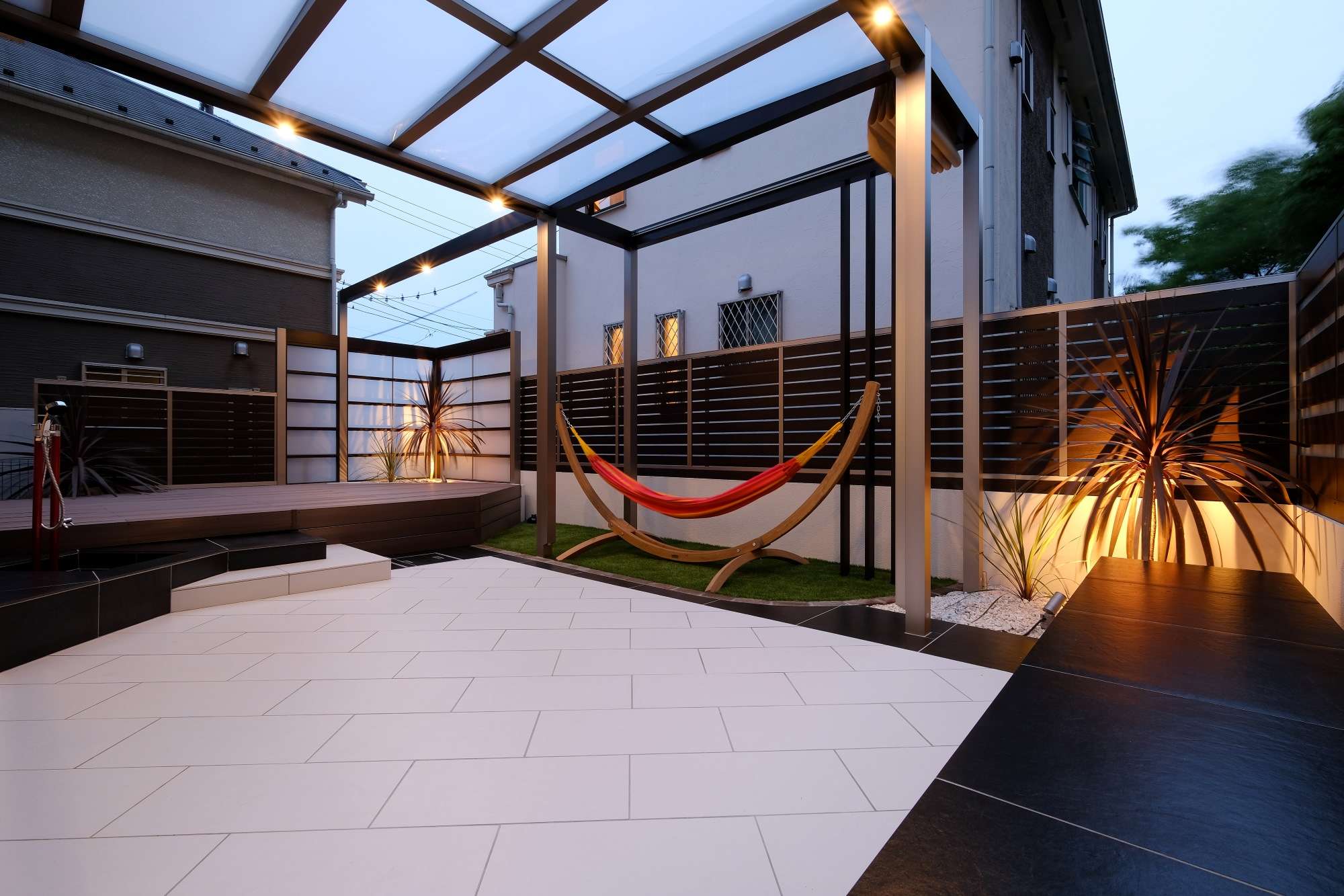 昼も夜も周囲を気にせずお庭を有効利用したいとのご相談をいただきました。また、雰囲気はリゾートをご希望とのことでした。