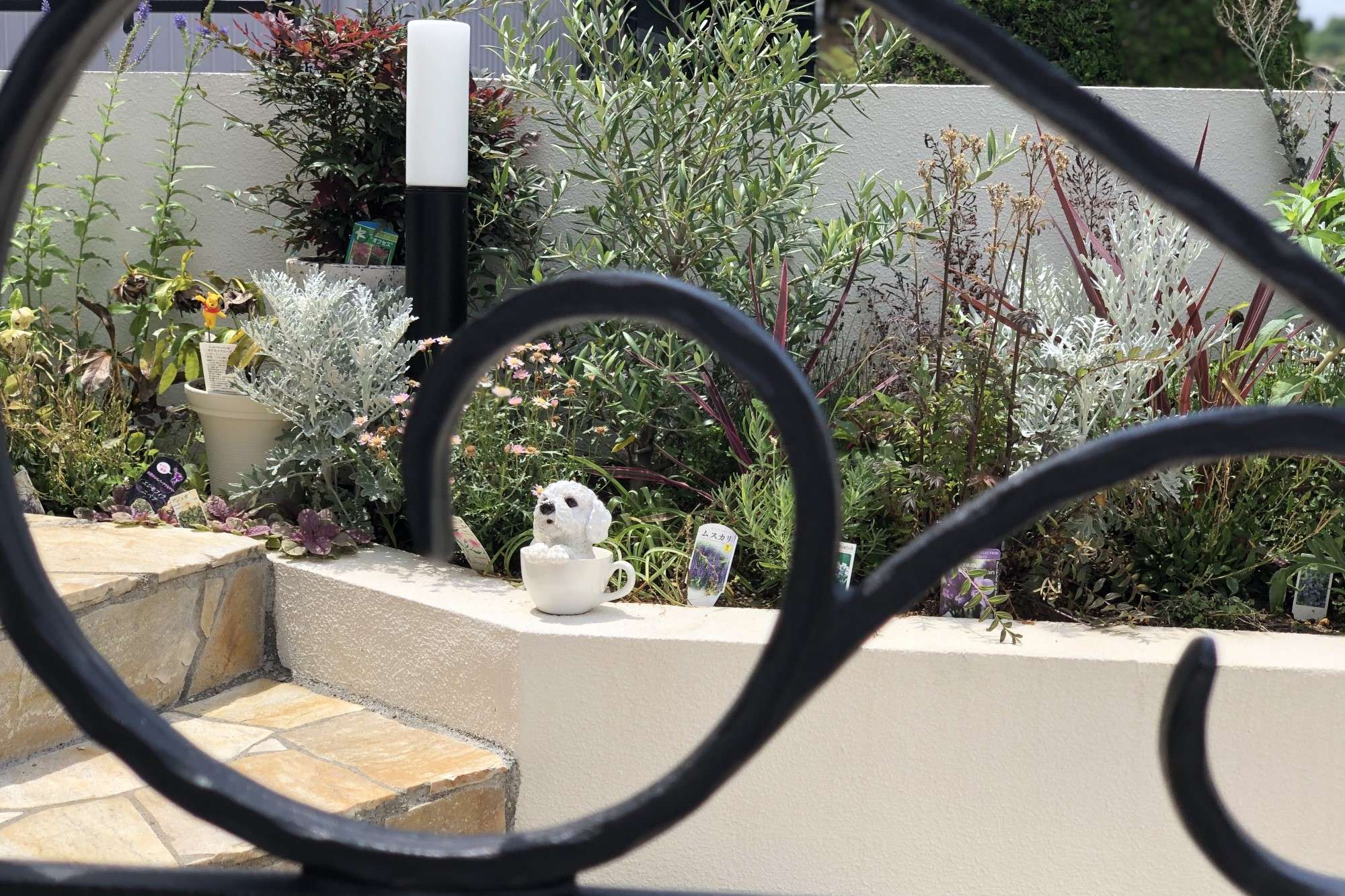 自然石はいろんな色味があり、デザインに合わせて石を切って組み合わせて施工しています。