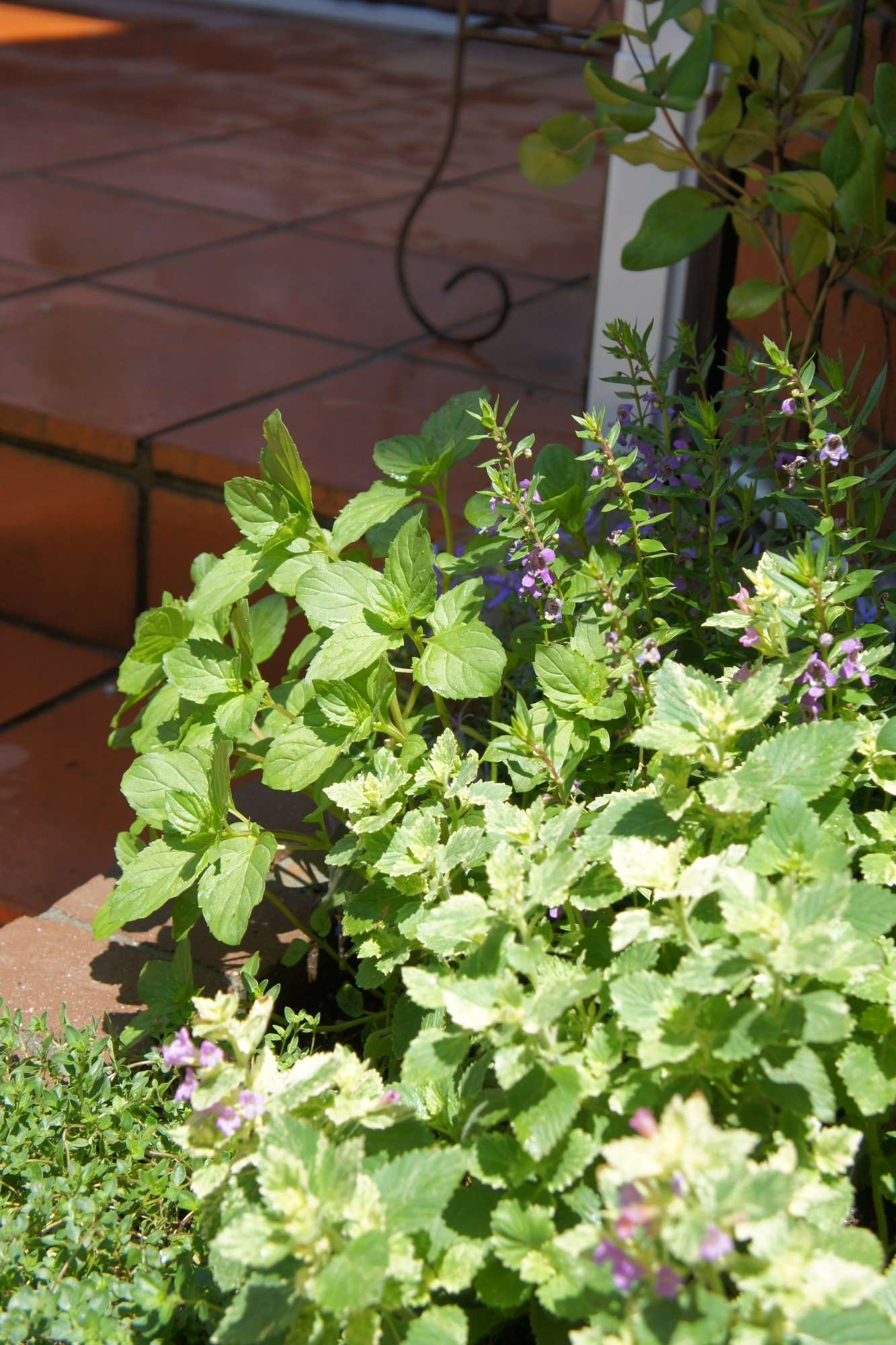 植栽は池の中やレンガの花壇、テラコッタ製鉢、植木等、配植を多く設けました。
