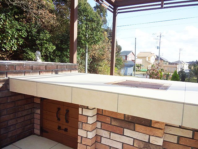 お庭の中心には親戚一同を呼んでも十分なスペースのガーデンキッチンを設置。